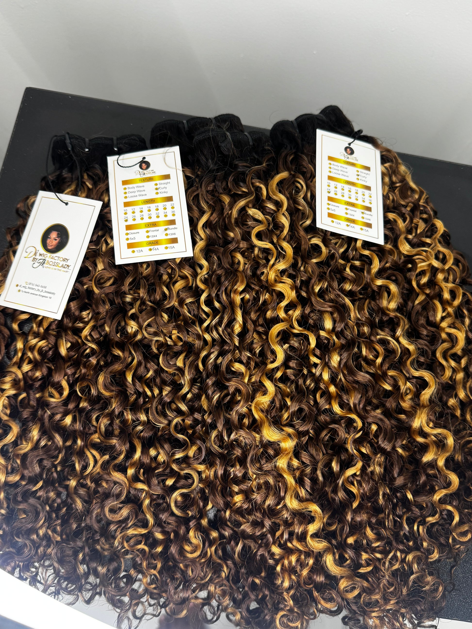 Our Vietnamese honey blonde pixie curly bundles are everything and more. These highlights are great for any complexion. Invest in your crown with these highlights that brings so much life to your beauty.